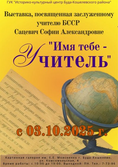 Выставка «Имя тебе — учитель», посвященная заслуженному учителю БССР Сацевич Софии Алексанровне