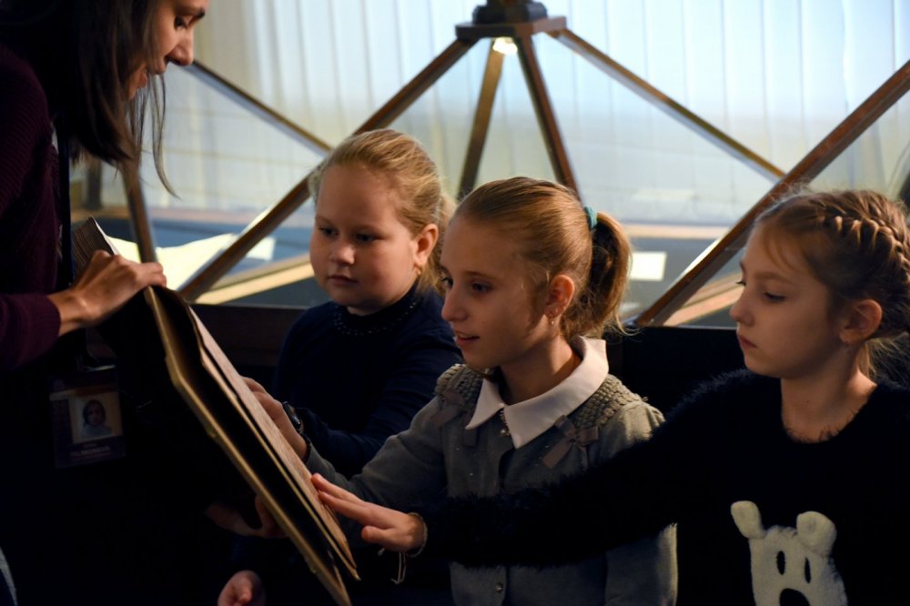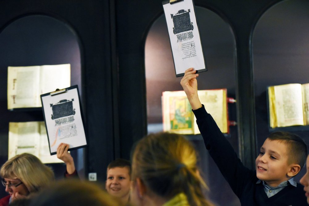 Museum classes “Manuscripts. Euphrosyne of Polack” were held in the Museum of the Belarusian Book-printing last week. In the classes boys and girls learnt the most ancient Belarusian manuscripts, explore the materials, hand-written books were made of. Children visited a scriptorium and refreshed their knowledge about Euphrosyne of Polack, who was the most famous woman-scribe of the 12th century. Also they tried on the role of an ancient illuminator – a painter, who used to decorate manuscripts, as well as the role of a modern paleographer by trying to read old handwritings. At the end of the lessons our little guests found out that making of a manuscript was an extremely hard and laborious process, that is why the invention of the printing press was one of the greatest achievements of mankind.